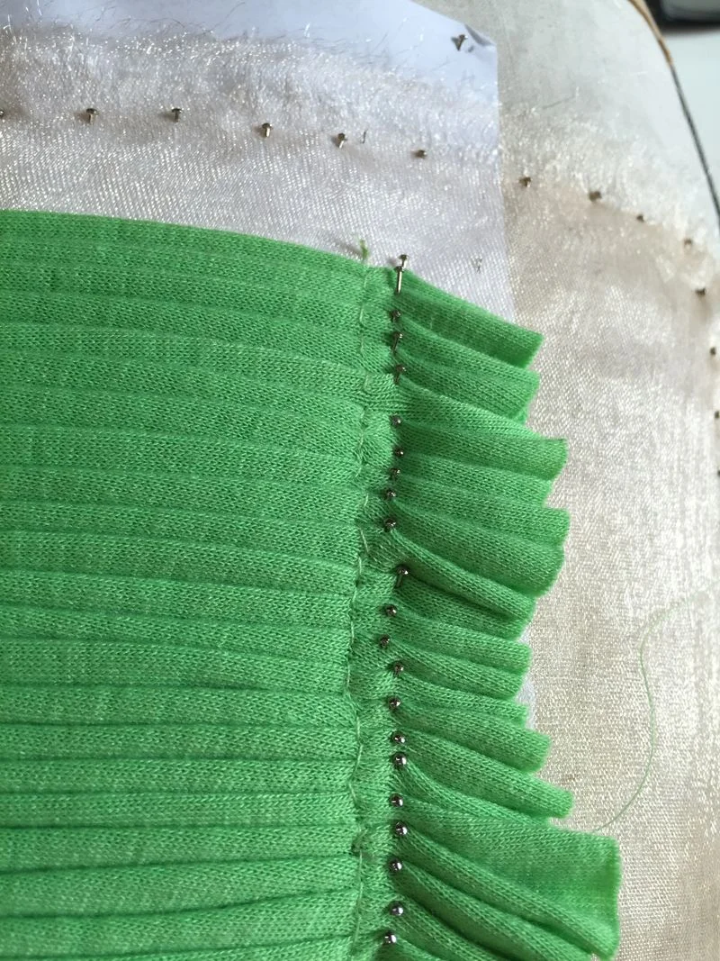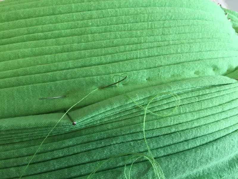 When both sides are securely sewn and still pinned, its time to sew the horizontal pleats permanently in place.