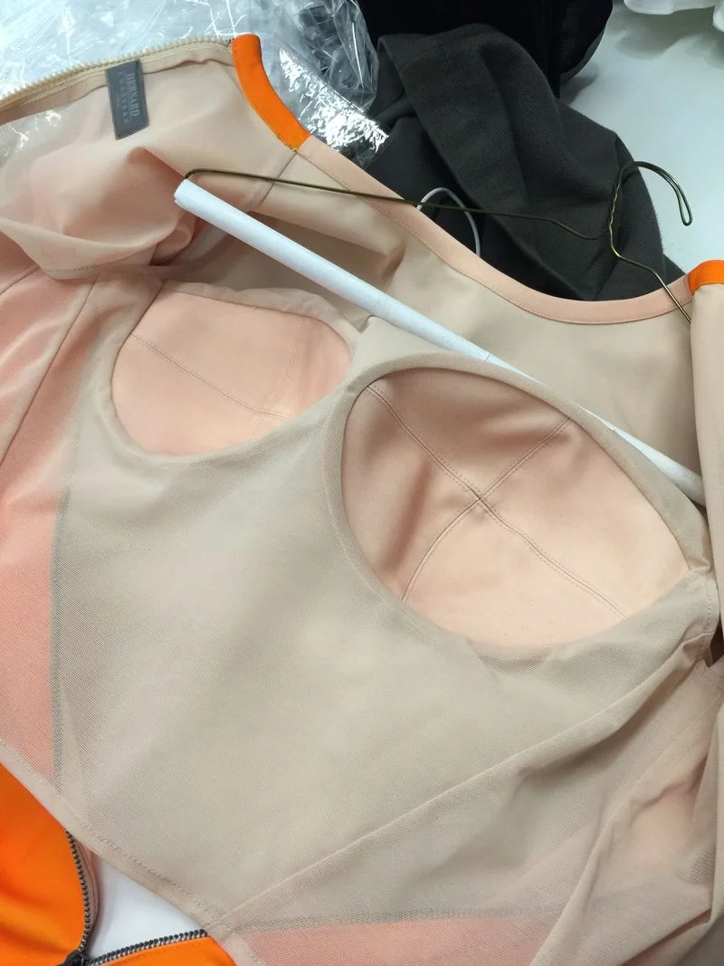 This helps keeps the weight of a garment to a minimum, as the yards of silk jersey needed for a dress become very heavy very quickly..