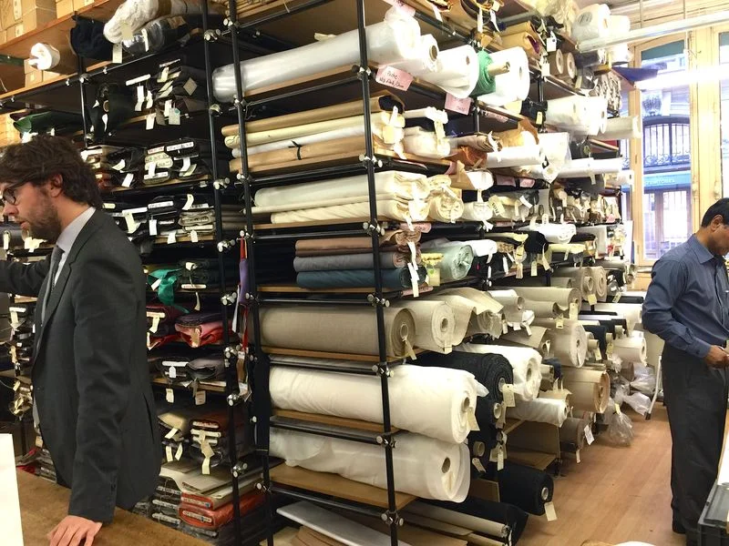 Virgil the owner (on the left) is fifth generation and loved how intrigued we were with all their different products and so pulled out sample after sample for us to look at.. apparently they carry so much stock because each couture house has a slightly different tailoring preference.